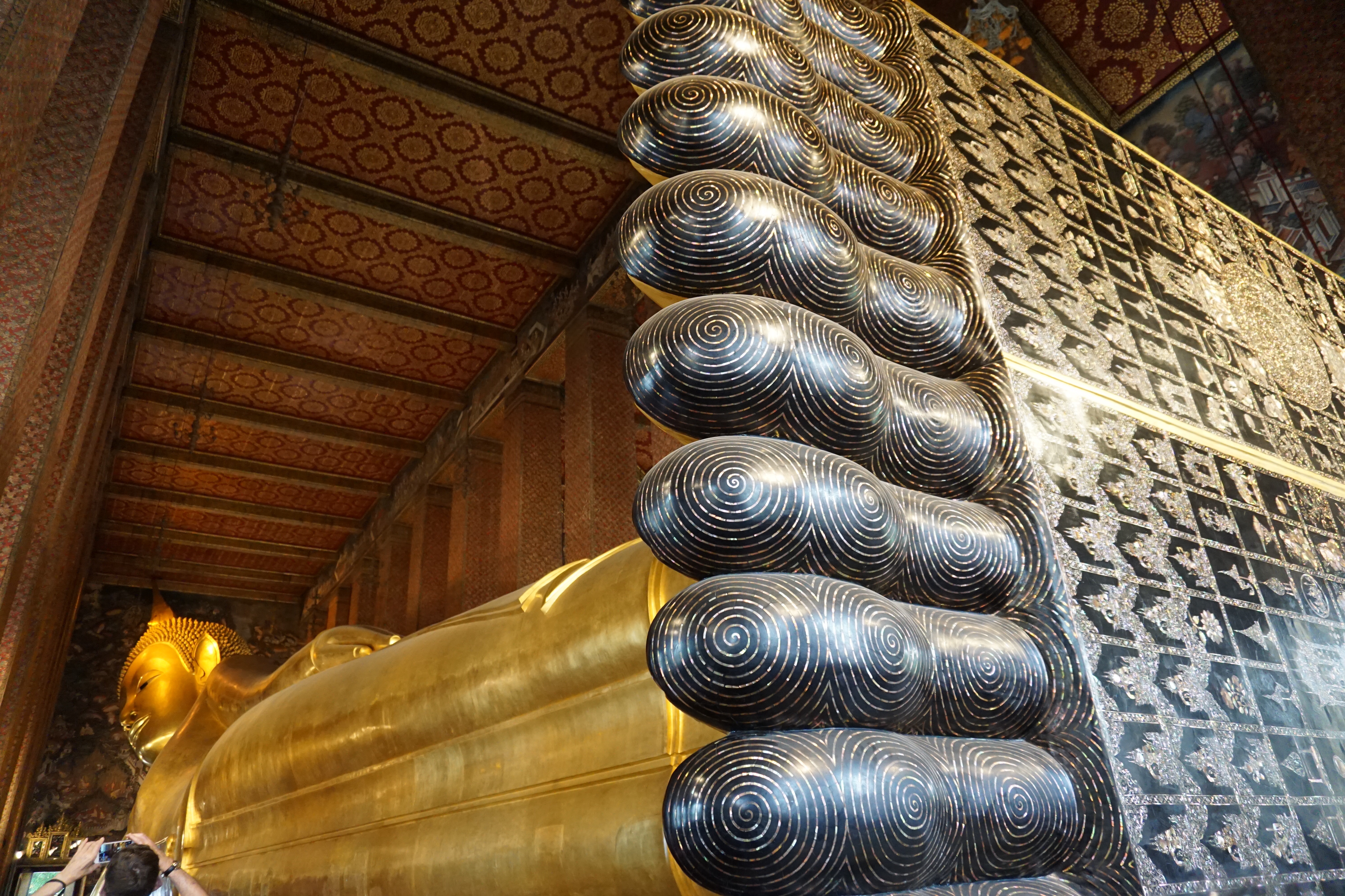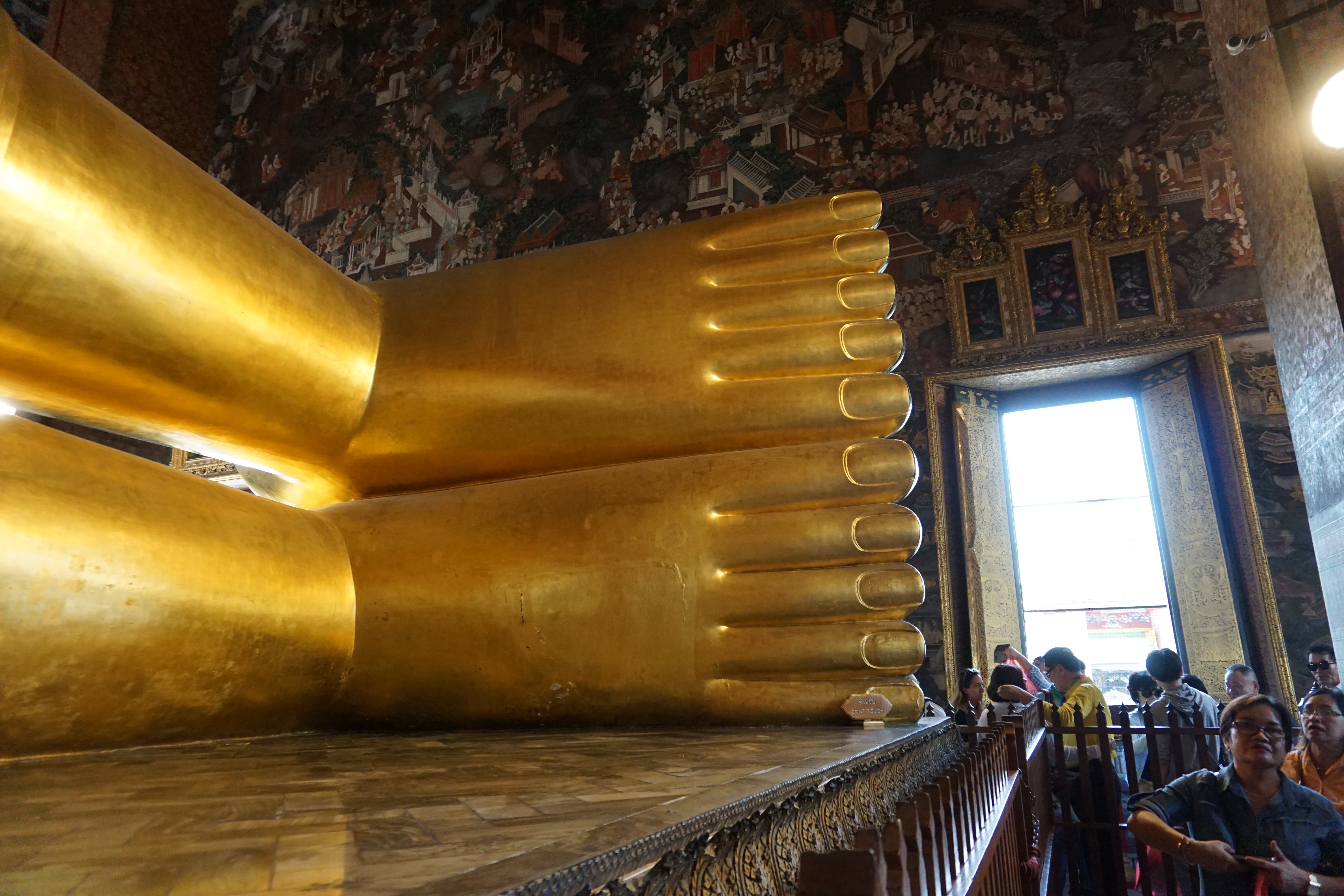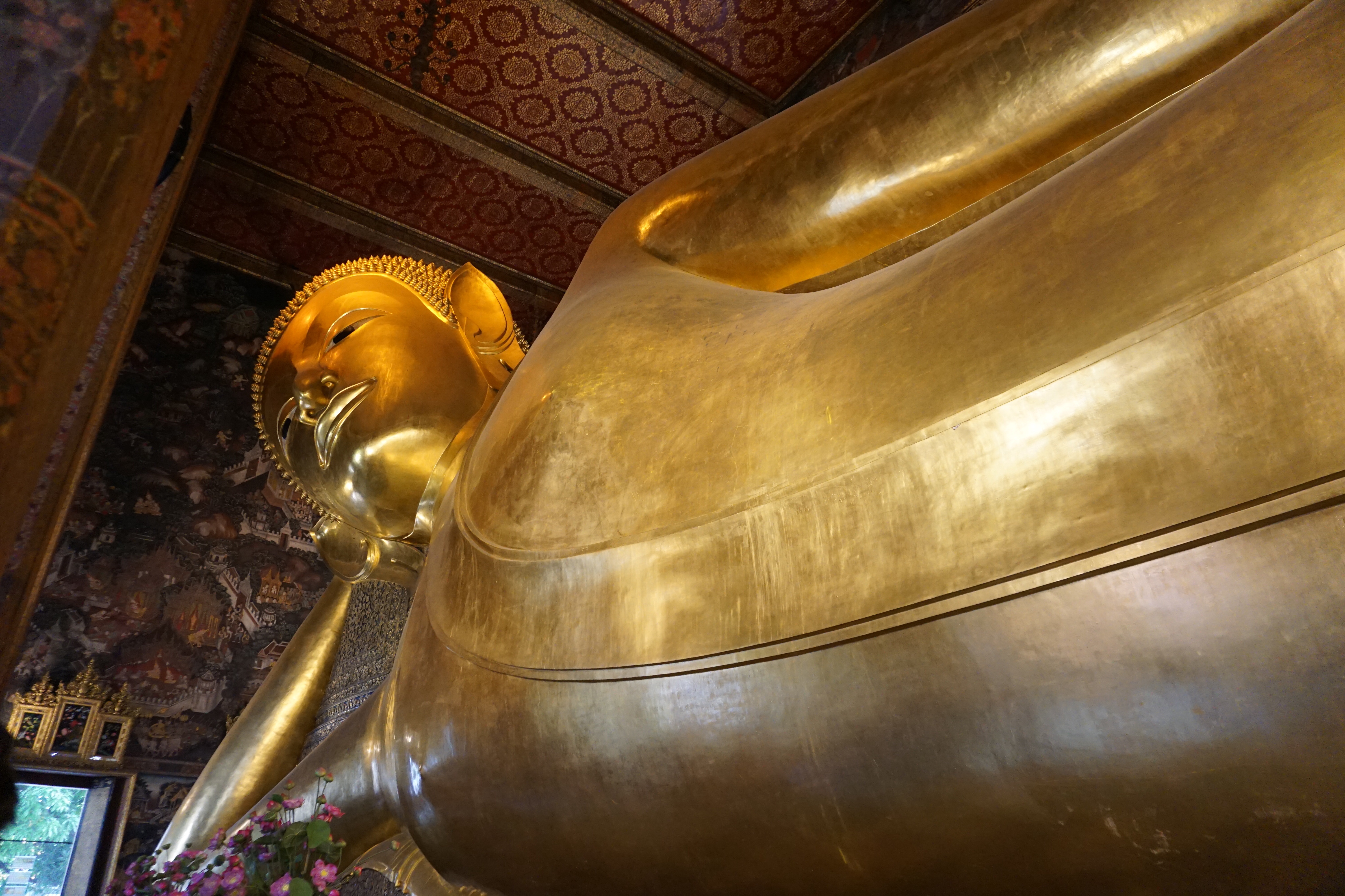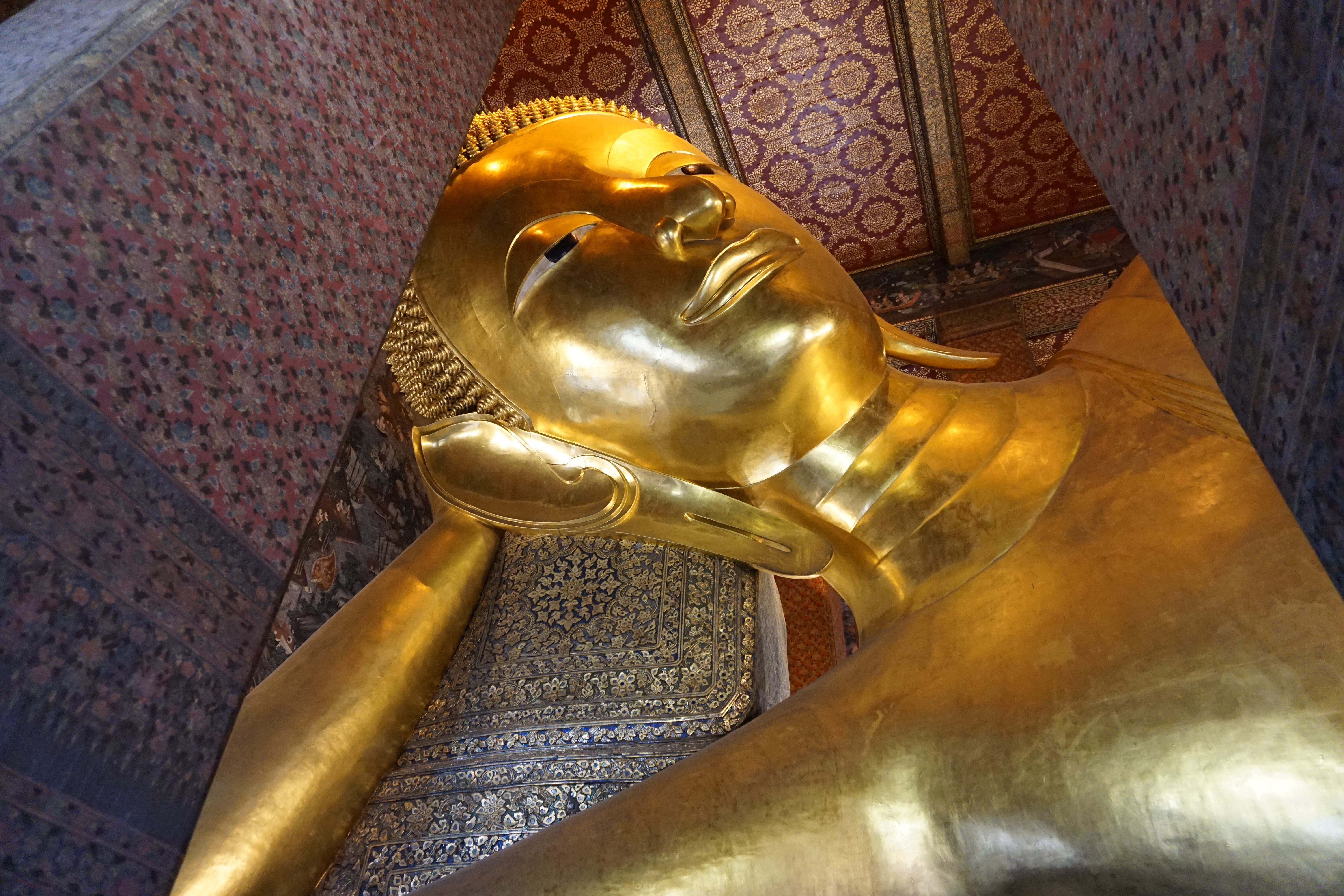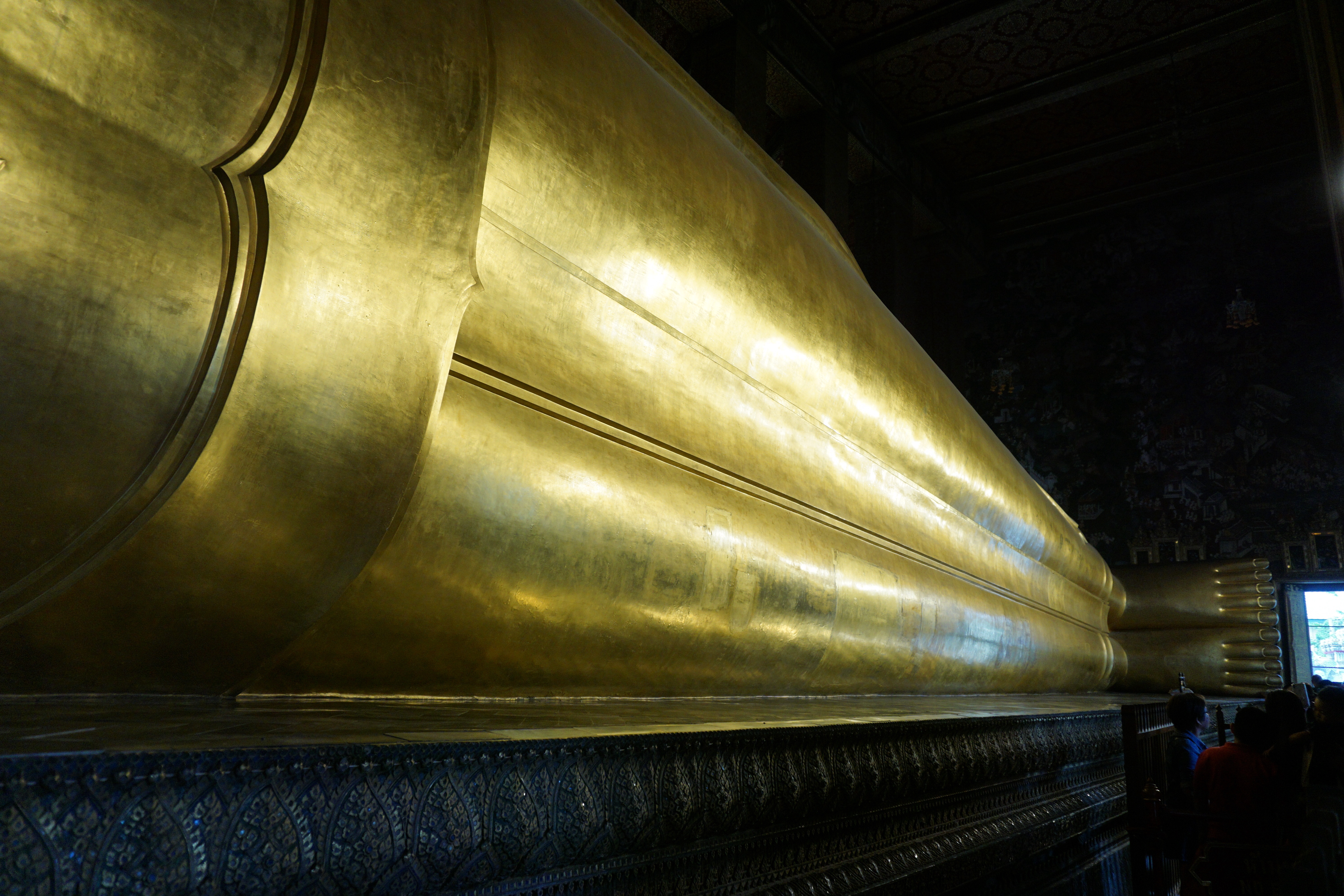 The recline Buddha is an enormous gold monument depicting Buddha reclining.