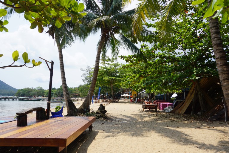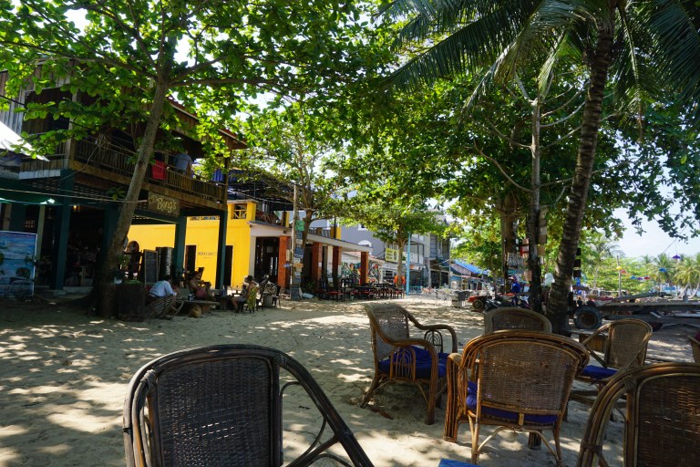 The beach here is just as beautiful as Ko Ta Kiev, there are just more people and dogs present. There are many restaurants catering to westerners with many vegan and vegetarian options with a strong Lebanese presence.